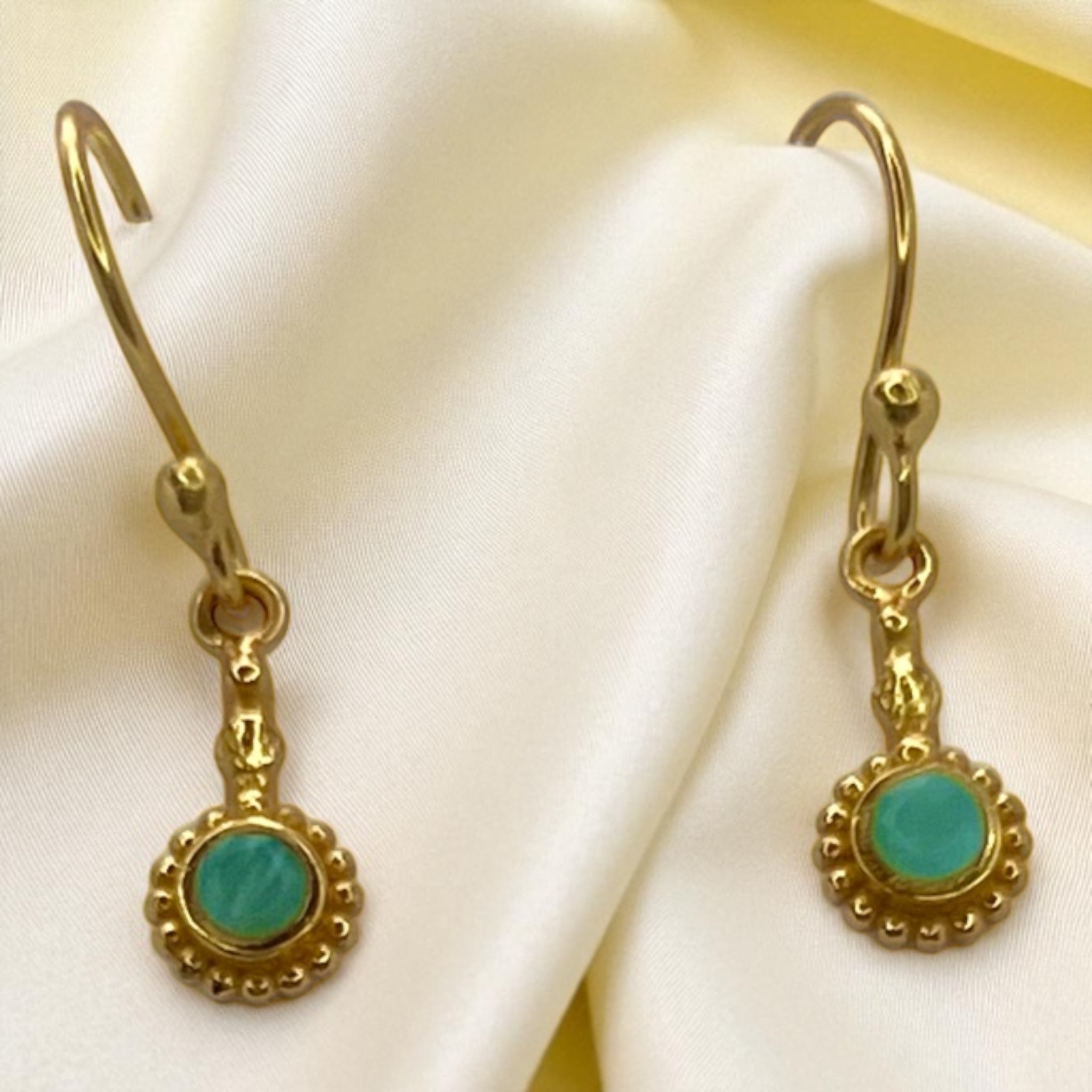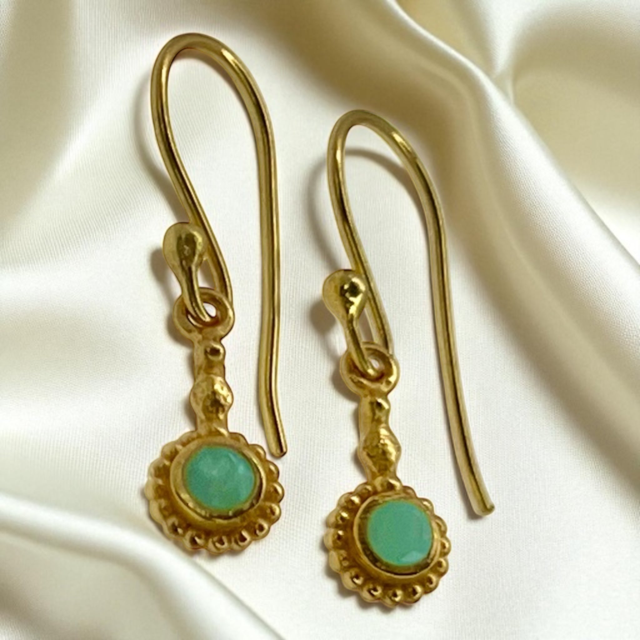 Auskarai su žalsvu brangakmeniu