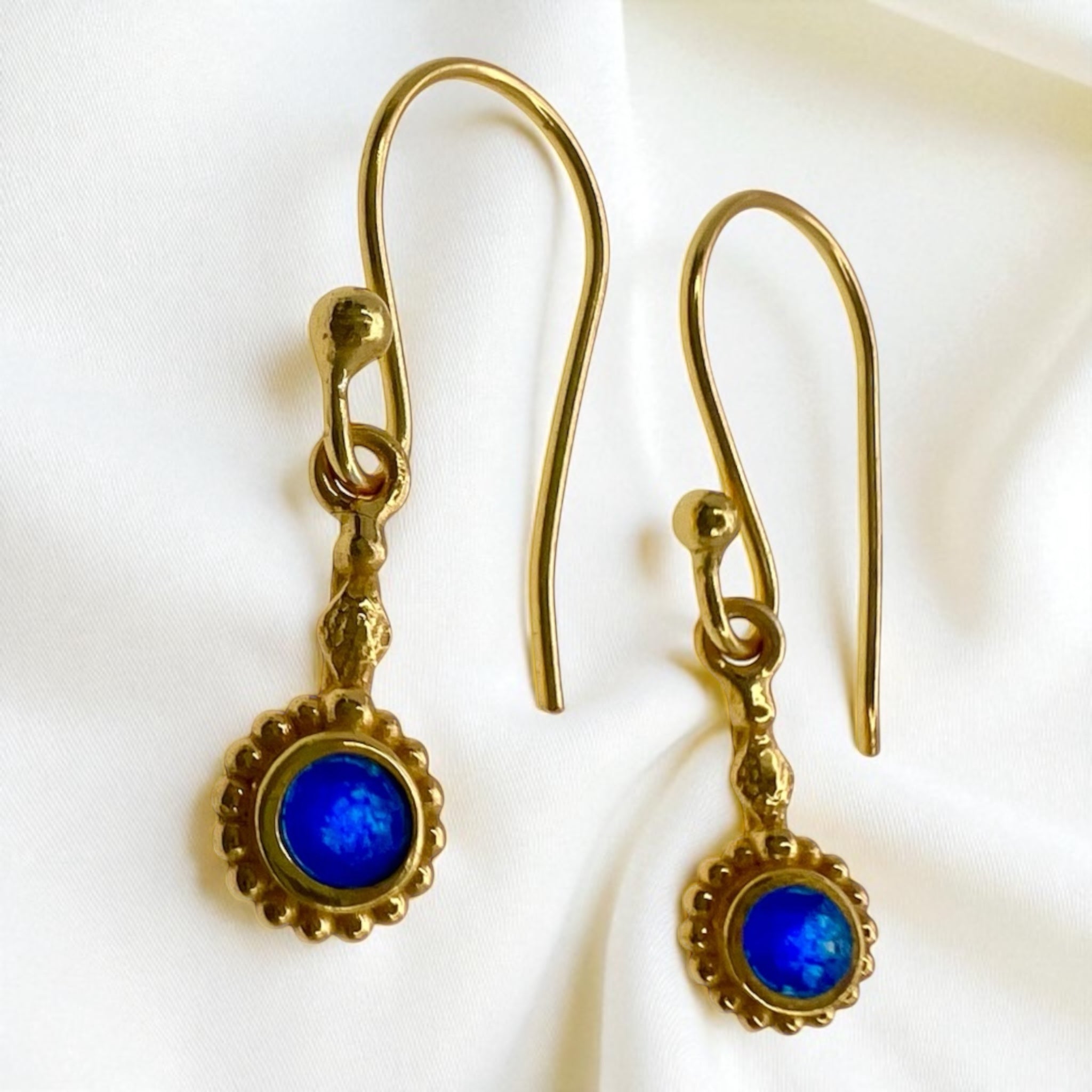 Paauksuoti sidabriniai auskarai vinukai su mėlynu kianitu